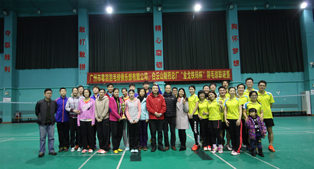 凯时制药厂羽毛球队与广州市粤羽羽毛球队合影留念